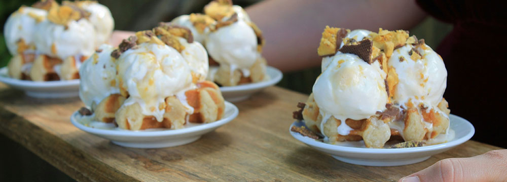 国産小麦粉と国産バターを使い、職人が一つひとつ丁寧に焼き上げた、香ばしいワッフル。